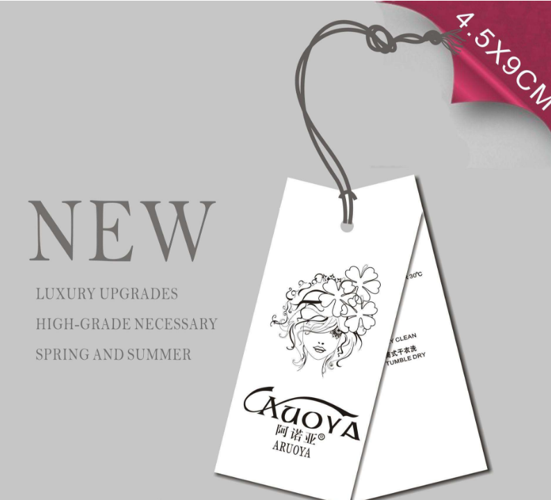 服裝吊牌:即各種服裝上吊掛的牌子,包含一些服裝材質(zhì),洗滌注意事項(xiàng)等信息。 從質(zhì)地上看,吊牌的制作材料大多為紙質(zhì),也有塑料的、金屬的。另外,還出現(xiàn)了用全息防偽材料制成的新型吊牌。