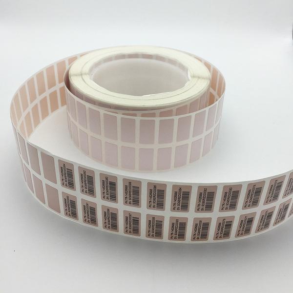 易碎紙不干膠標(biāo)簽:采用高強(qiáng)度持粘能力的粘合劑,其粘合能力遠(yuǎn)大于面材本身的斷裂強(qiáng)度,易碎紙不干膠面材經(jīng)印刷﹑模切等工序加工后制成易碎貼,貼到商品上就不能完整揭下來,從而避免了造假者利用真品商標(biāo)來推銷假冒偽劣商品的可能。